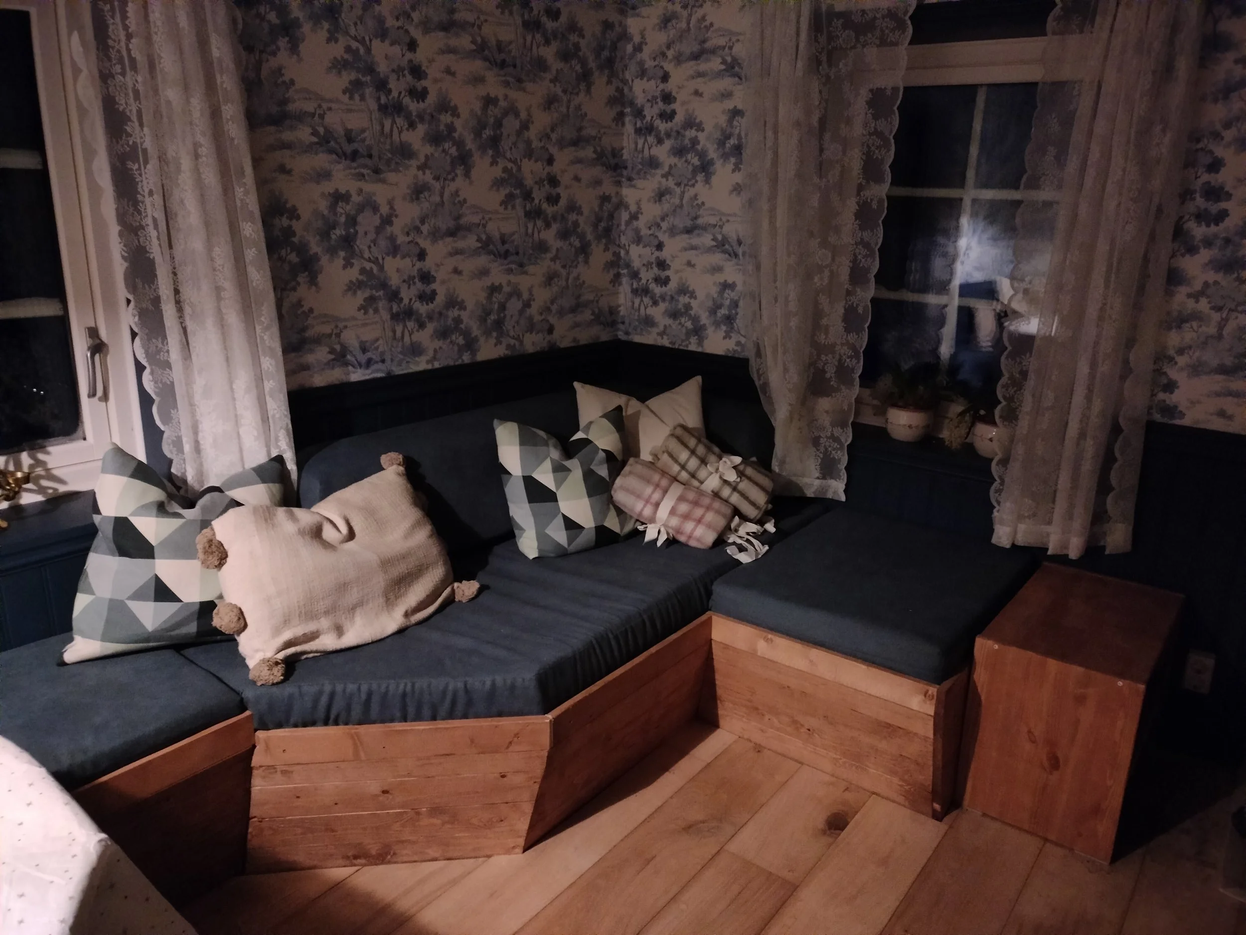 Nestled among rolling fields with grazing sheep and open skies, our Grillkåta (grill hut) is a cozy gathering place no matter the season. Heated by a crackling fire and designed for comfort, it’s ideal for evenings of laughter, shared meals, and long conversations — whether it’s under summer light or crisp winter stars.